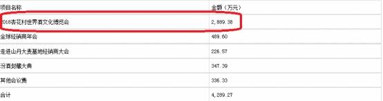山西汾酒于今年5月31日回复上交所的公告中显示,为提升品牌影响力,利用重大活动开展会议营销造成报告期会议费增加,其中于2018年9月19日至22日举办了4天的“2018杏花村世界酒文化博览会”花费高达2889.38万元,据山西汾酒公司董秘王涛称,外界看到该会议仅4天,但实际费用包含整个会议前期的筹备、宣传等,仅凭会期来计算日均花费700多万有失公允。