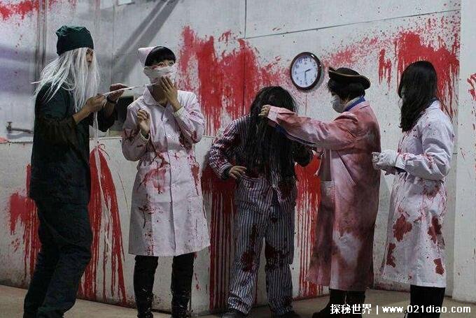 这个鬼屋是一个两层楼的医院,在里面根本没有任何规定的路线,在里面就像是走迷宫一般,而在这么大的一个地方会安排一些员工和道具来吓你,这个鬼屋里面也设有数个求救站,供人受不了或走不出去由员工带你出院,据说很多人都是从入口跑出来的。