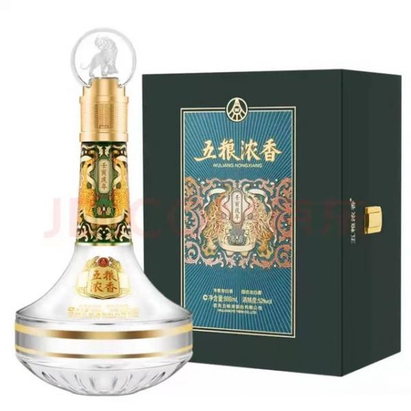 年三十虎年纪念版,每一瓶都有收藏证书及身份编号,融入生肖、剪纸、艺术元素,国风雅韵,虎虎生威。瓶身嵌刻范扬作品《虎啸山林》,书写了对2022壬寅虎年的美好祝愿。这款500ml的虎年生肖纪念酒在古井贡酒京东旗舰店售价2099元/瓶。