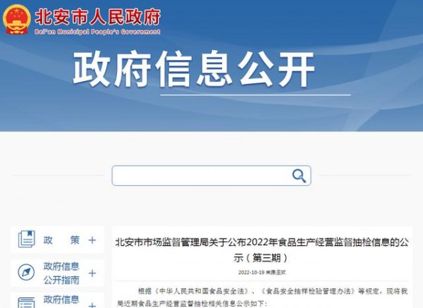 中国质量新闻网讯 近日,黑龙江省北安市市场监督管理局公布2022年食品生产经营监督抽检信息公示(第三期)。本期抽检信息共涉及482批次食品样品,其中抽检酒类32批次,合格样品31批次、不合格样品1批次。合格样品信息如下:
