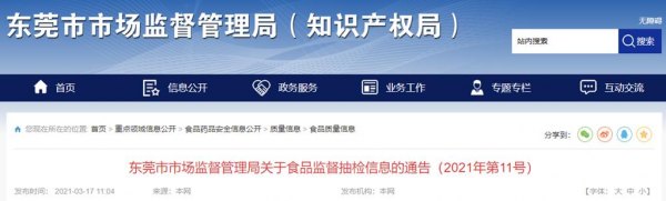 中国质量新闻网讯 广东省东莞市市场监督管理局网站3月17日发布关于食品监督抽检信息的通告(2021年第11号)。