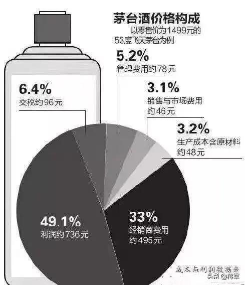 有几个网上可见的算数分享一下,一、茅台酒成本高粱小麦水电气人工贮藏物流销售广告加起来一瓶酒的平均成本一百多块,网上的数据如果不准确没关系,可以再问问厂家,毕竟不是什么丢人的事,再说了,有工商总局发改委管着。二、利税,一瓶酒利税400多,股市及分红又去了400多,还剩多少我也不会算。三、分销,说是985给经销商,零售标价1499,然而永远处于缺货状态,是酒去哪儿了,还是零售价走丢了?谁卖谁清楚。酒圈里有人笑言中秋的时候终端消费价格会到3000元,你猜又会是哪天呢?