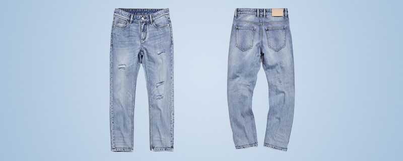 牛仔裤裤脚要用AB折、束脚折法、工边卷法等折裤脚才不会松。用比较收紧裤腿的方法折裤脚才不会松。