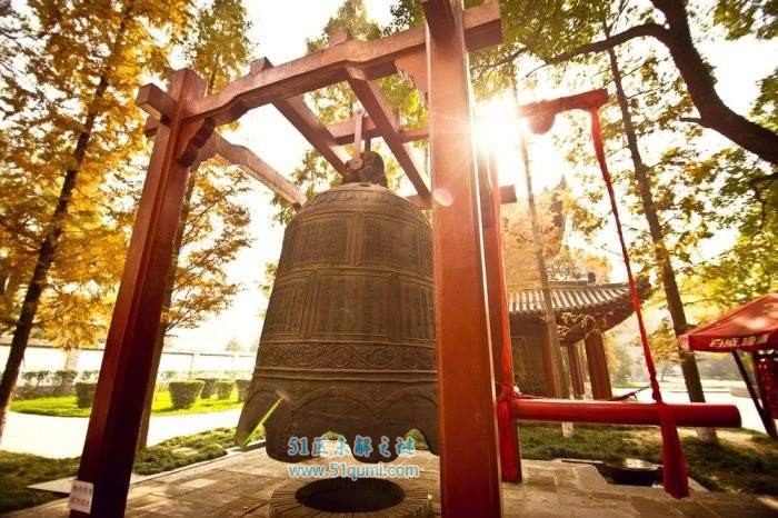 这里的雁塔指的是西安市城南荐福寺内的小雁塔,塔旁保存着一口金明昌三年铸的2万多斤重的大铁钟。过去,每天清晨都要按节律敲击大铁钟,向人们报晓。清脆而宏亮的钟声,远震古城内外。小雁塔是唐代著名佛教寺院荐福寺的佛塔。荐福寺建于唐睿宗文明元年,是唐高宗李治死后百日,宗室皇族为他“献福”而建造的。据说如果有人思念远方的亲人,只要把亲人的名字和去处写在一张黄笺上,钟声就会把思念之情传到千里之外的亲人耳中.因此“雁塔晨钟"被誉为关中八景之一。