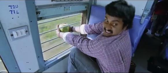 所以最后,拉姆坐上了回老家村子的火车。火车上,拉姆邂逅了一位漂亮的姑娘阿普,两人相谈甚欢相见恨晚,拉姆一高兴就在火车停靠的时候买了一个椰子,却卡在车窗外面拿不进来。这也是很多网友看过的那张沙雕动图的来源之处了。
