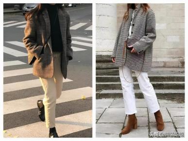 直筒九分是常见的白裤子版型,直筒的造型不会紧贴腿部线条,没有褶皱线条,就不会降低裤子的质感。宽松笔直的裤筒,巧妙化解腿型不直的问题。九分长度,适合任何腿部的长度,露出脚踝显瘦显高,冬季需要温度穿搭,配上短靴。