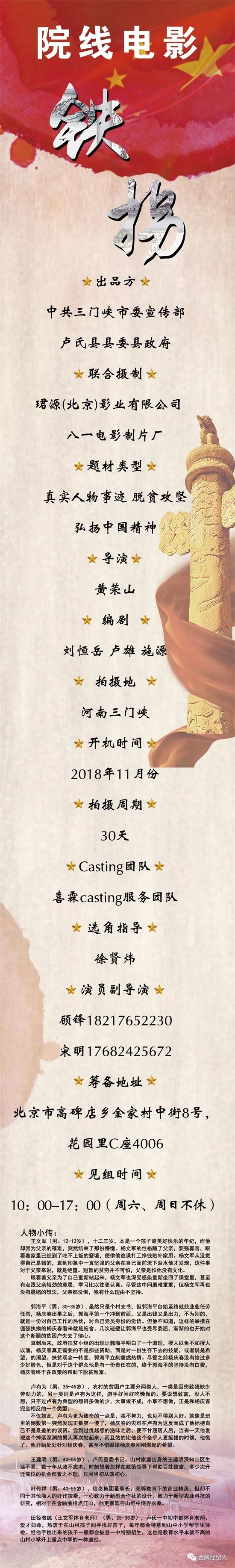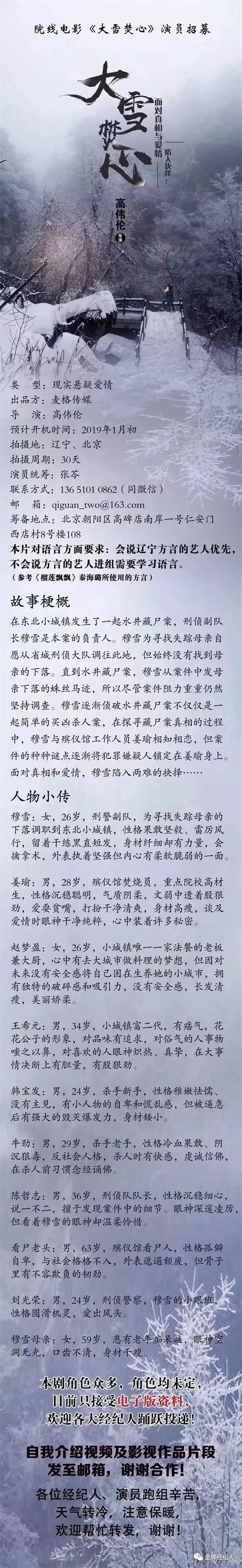 本剧角色众多,欢迎各位演员老师、经纪人投递资料,更多详细人物小传请联系选角导演索取,感谢大家鼎力支持。