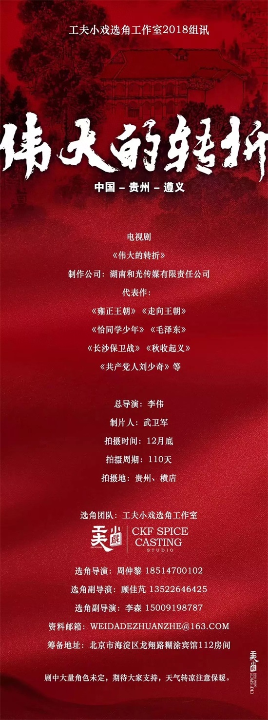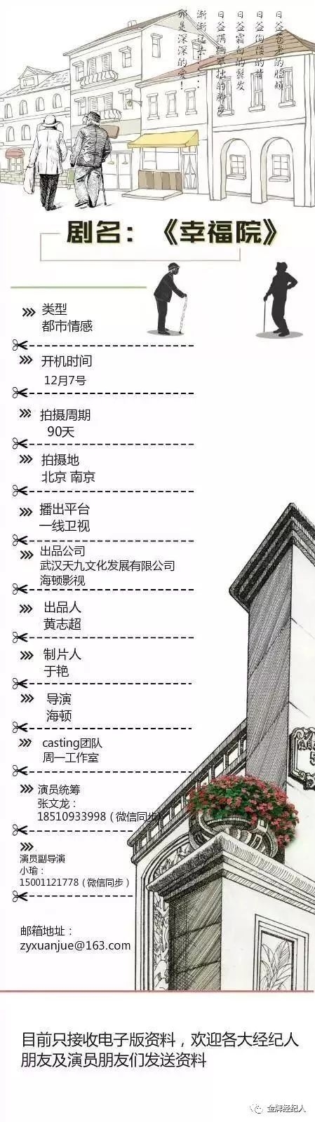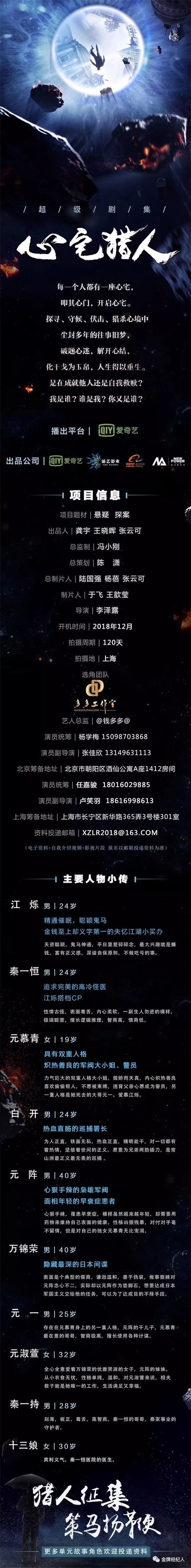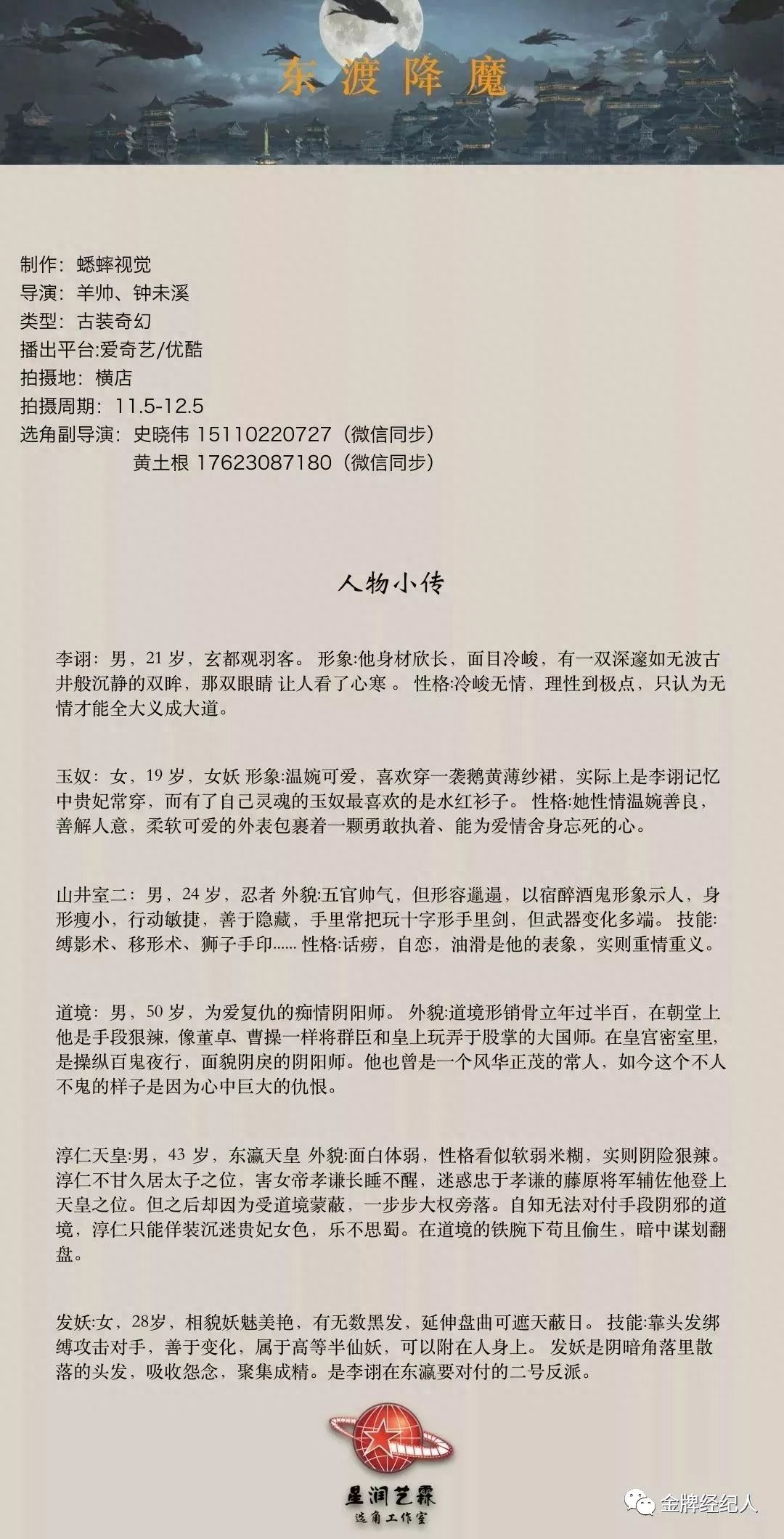 剧中众多角色未定,欢迎各大经纪人、演员前来洽谈。