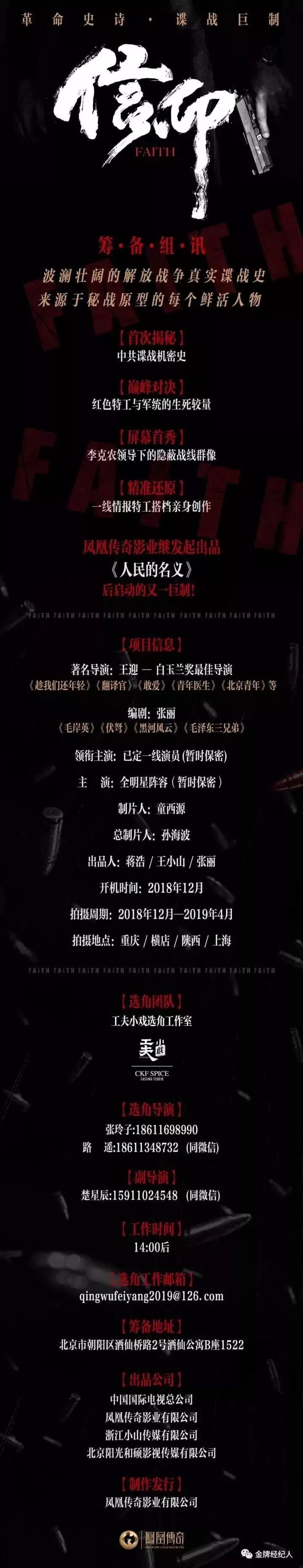 本栏目组讯由小编采集并供业内参考交流使用,信息内容如有变化请根据实际情况核实。各大剧组如有组讯发布,可以联系金牌经纪人,我们帮您扩散!