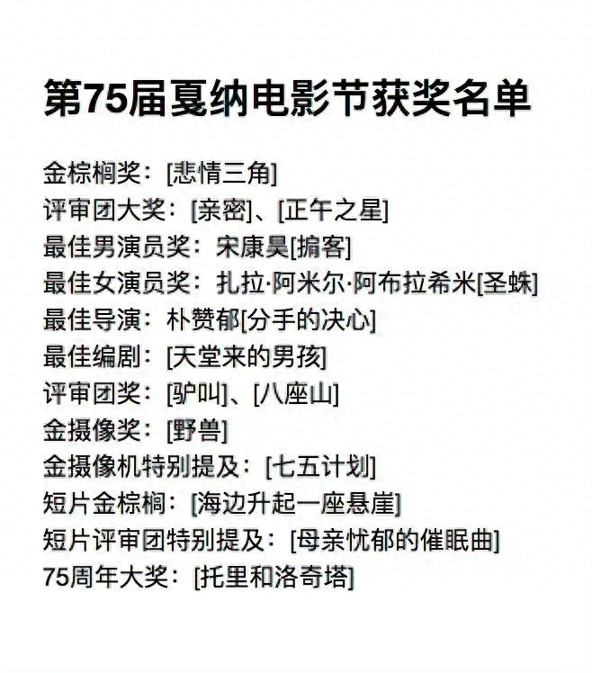 第75届戛纳电影节获奖名单出炉!