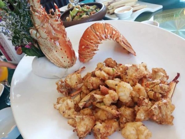 避风塘炒龙虾是把龙虾去壳取肉,然后把肉剁成小块,裹上面糊油炸后,加入面包糠等调料爆炒出来,最后再摆成龙虾的形状上桌。