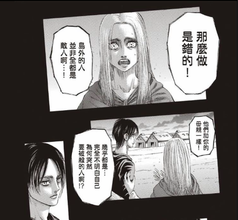 平时容易冲动的艾伦此刻突然冷静了下来,他对希斯特利亚分析到:“尤弥尔一直考虑的是怎么让你能活下来。尤弥尔在最后,是基于自己的意志才跑回去的吧?”