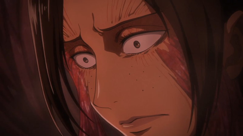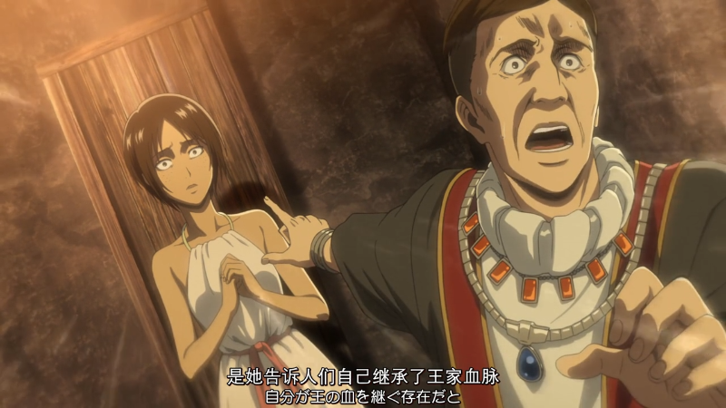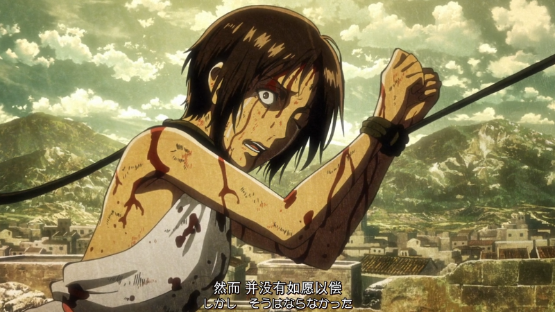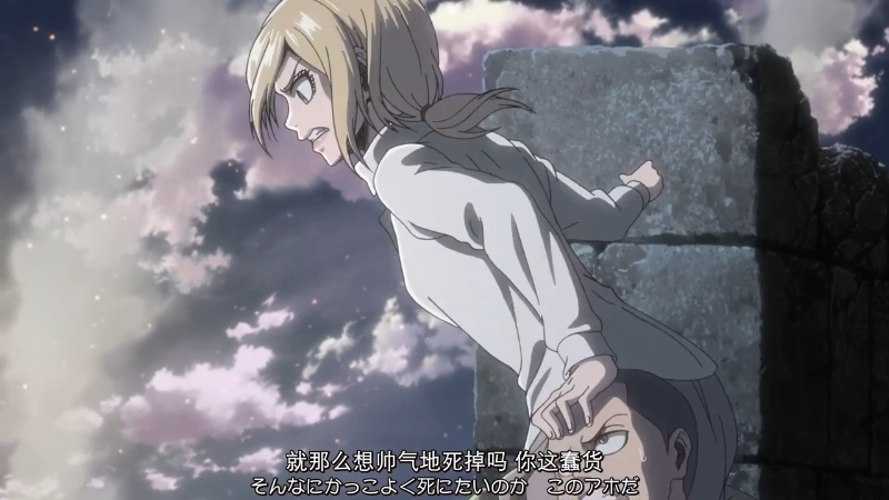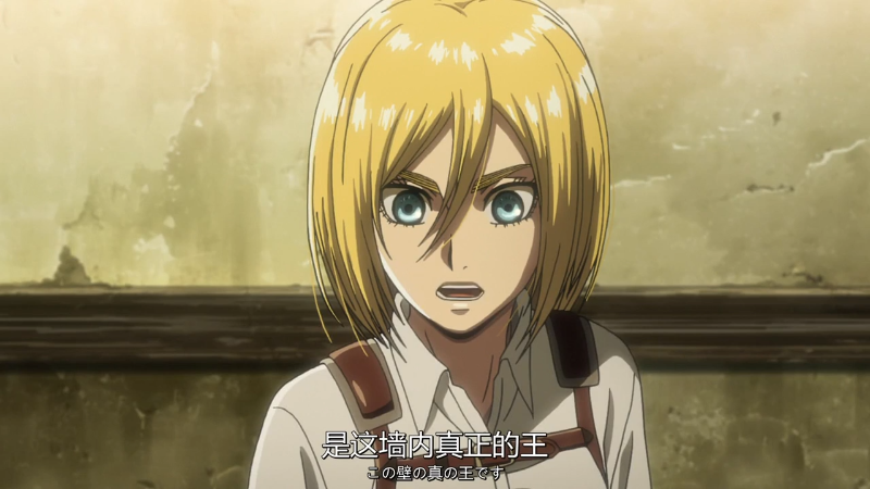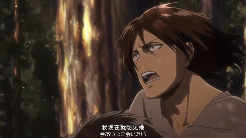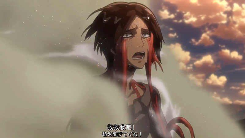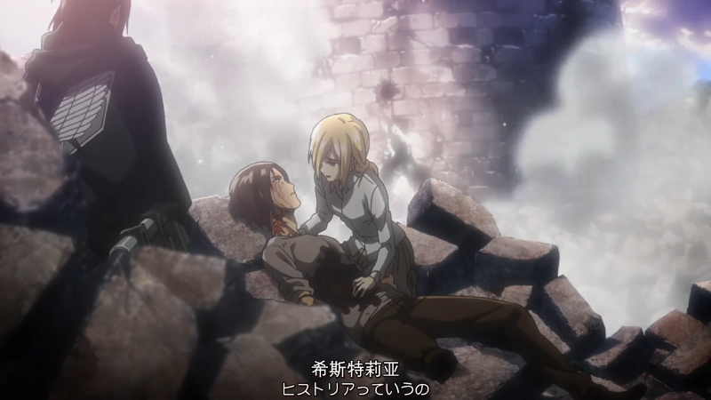 调查兵团收拾残兵撤回城墙上,希斯特利亚顾不上身体受伤,请求艾伦去救回尤弥尔。希斯特利亚精神接近崩溃,她失态又很不近人情地说: