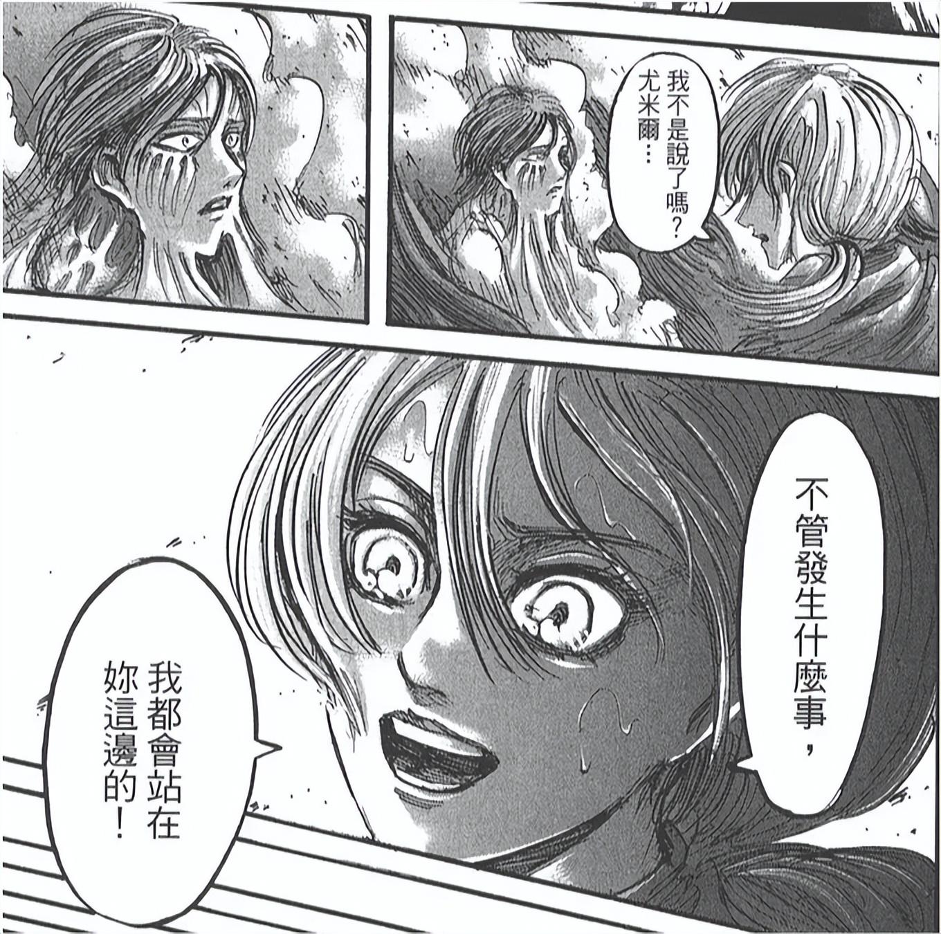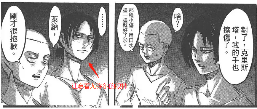 (漫画原话)莱纳对尤弥尔的评价:“尤弥尔好不容易变回人类...直到遇见克里斯塔...她才找到一个比自己更重要的人,让她有勇气扑向巨人群中”