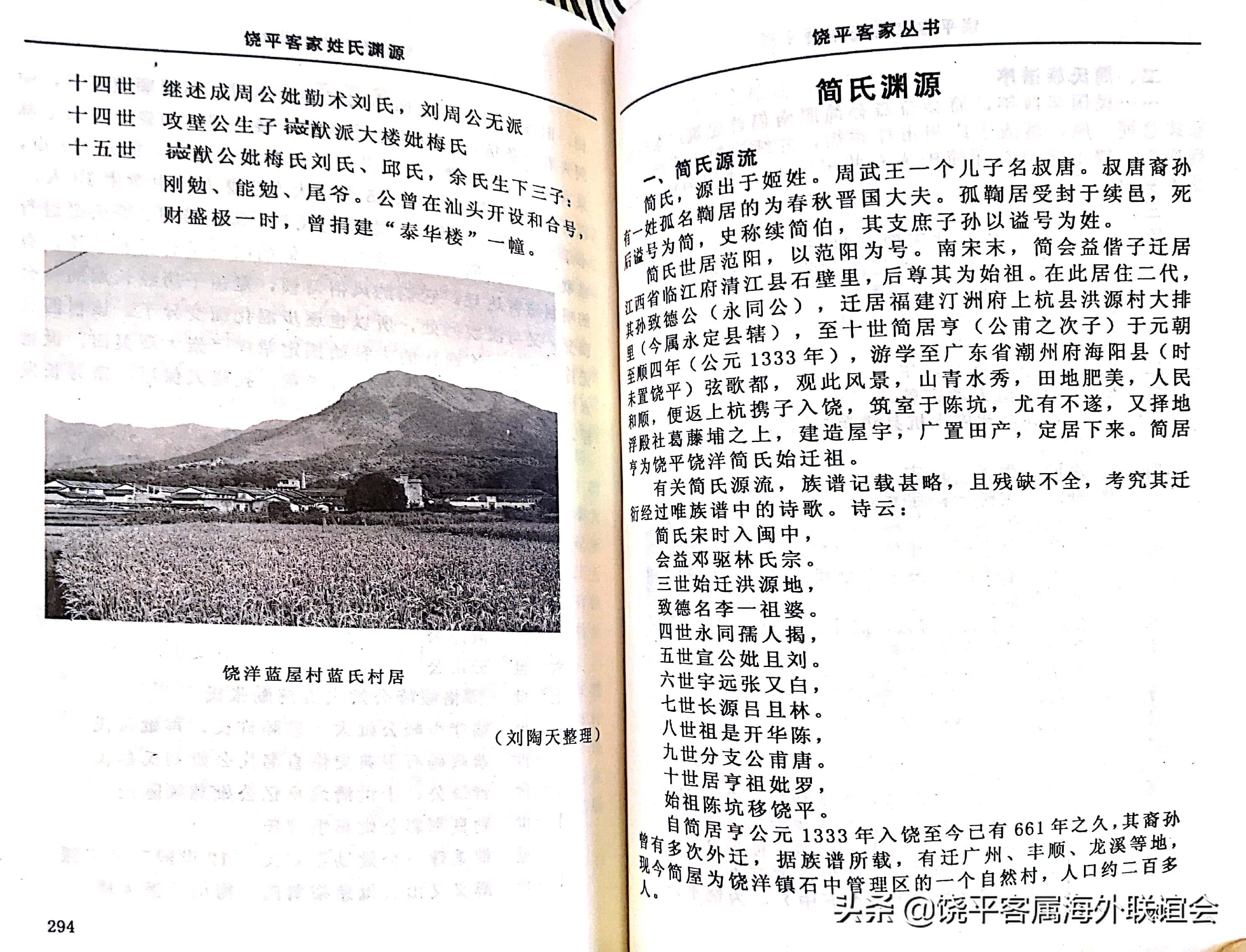 下面为《饶平客家姓氏渊源》书中部分内容影印件,全书内容如有需要可联系广东饶平客属海外联谊会秘书处索取影印件。