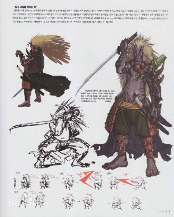 身体大约是人类的1.5倍大,使用双剑。