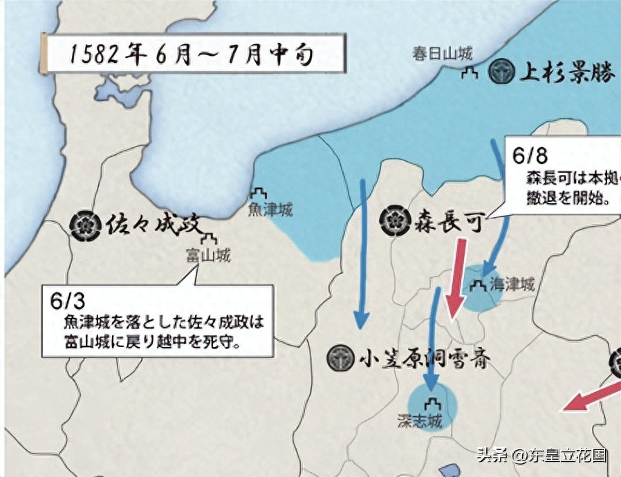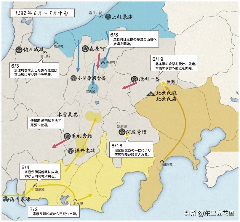 随着织田政权倒塌,原来属于武田地盘的甲信野地区发生了巨大动荡,光高潮期就有5个月,从1582年6月开始到10月份才结束。