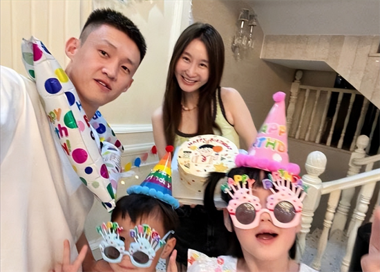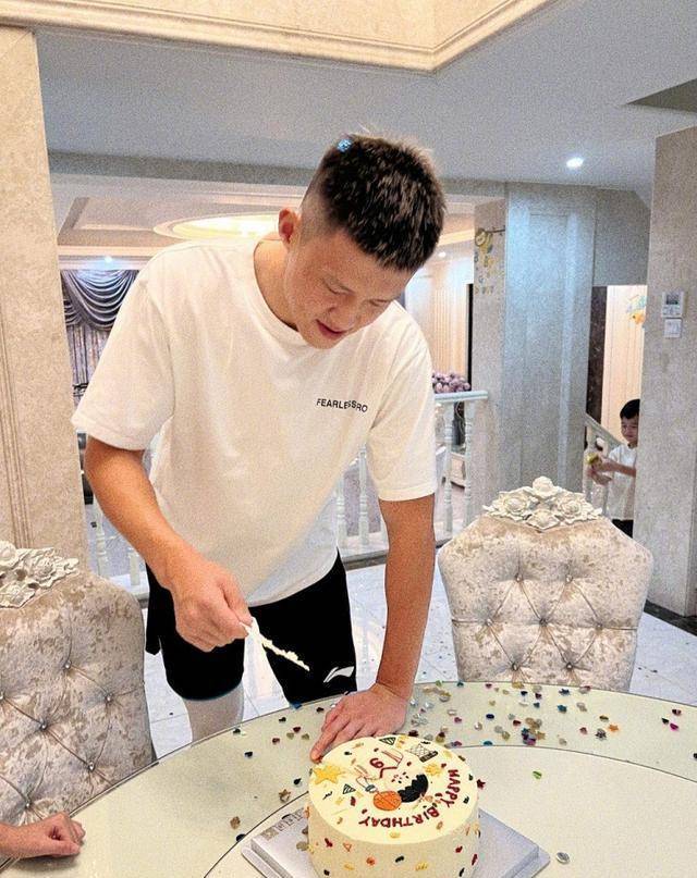 从照片上看,周鹏在东莞的豪宅里提前和家人一起过生日。老婆为他准备了一个蛋糕造型,他穿着9号球衣打篮球,很贴心!