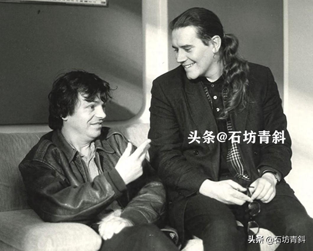 电影《哭泣游戏》(1992)片场,演员斯蒂芬·瑞(左)和制片人斯蒂芬·伍利在聊天