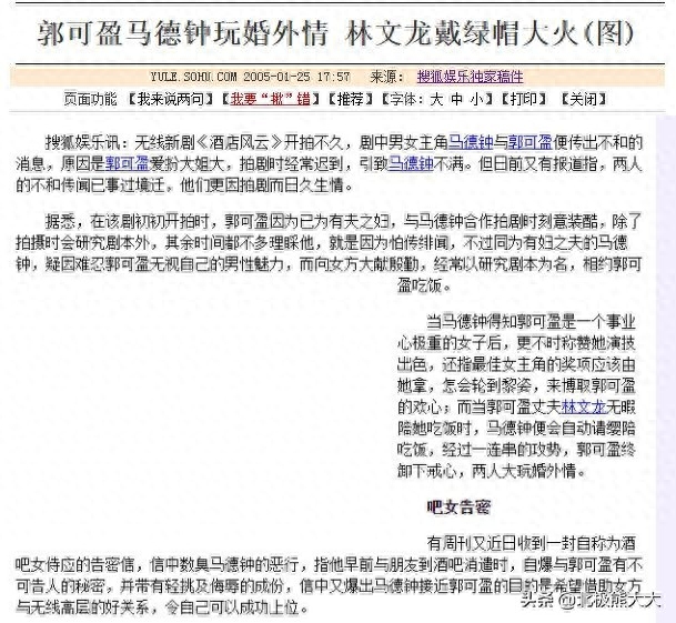 如:在拍摄《酒店风云》时,与马德钟假戏真做,玩起了婚外情。
