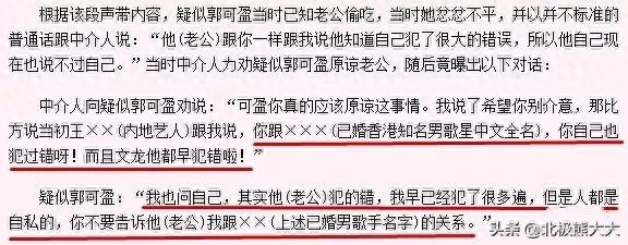 录音中提到了郭可盈的劈腿对象,是一位已婚男歌手。