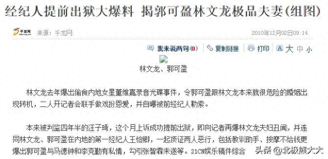 直到2009年,郭可盈与当时的经纪人汪子琦决裂反目,接着经纪人曝出一段又一段出轨录音和照片,众人才彻底看清这对“荒唐夫妻”的真面目。