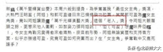 “给她也正常,毕竟她在TVB混了那么多年了,也该拿个老人奖了。”