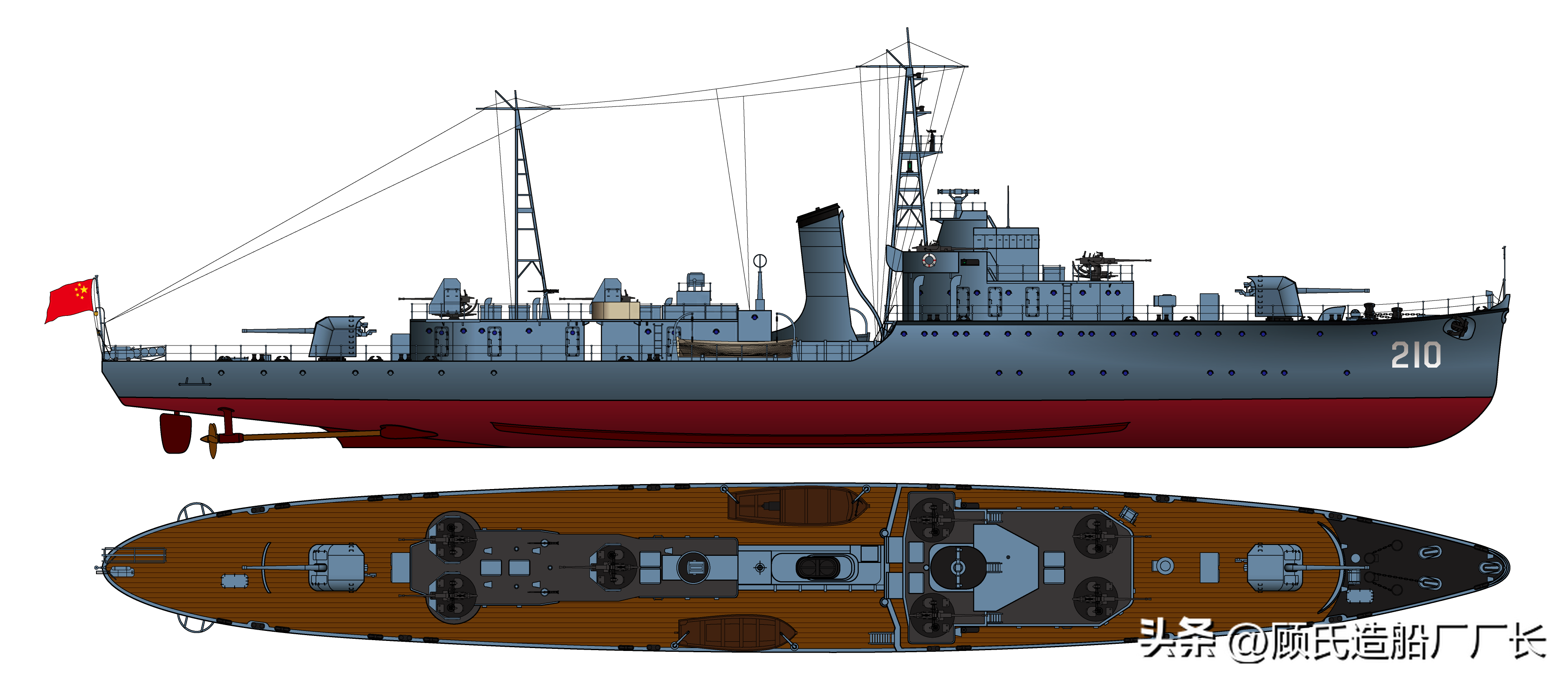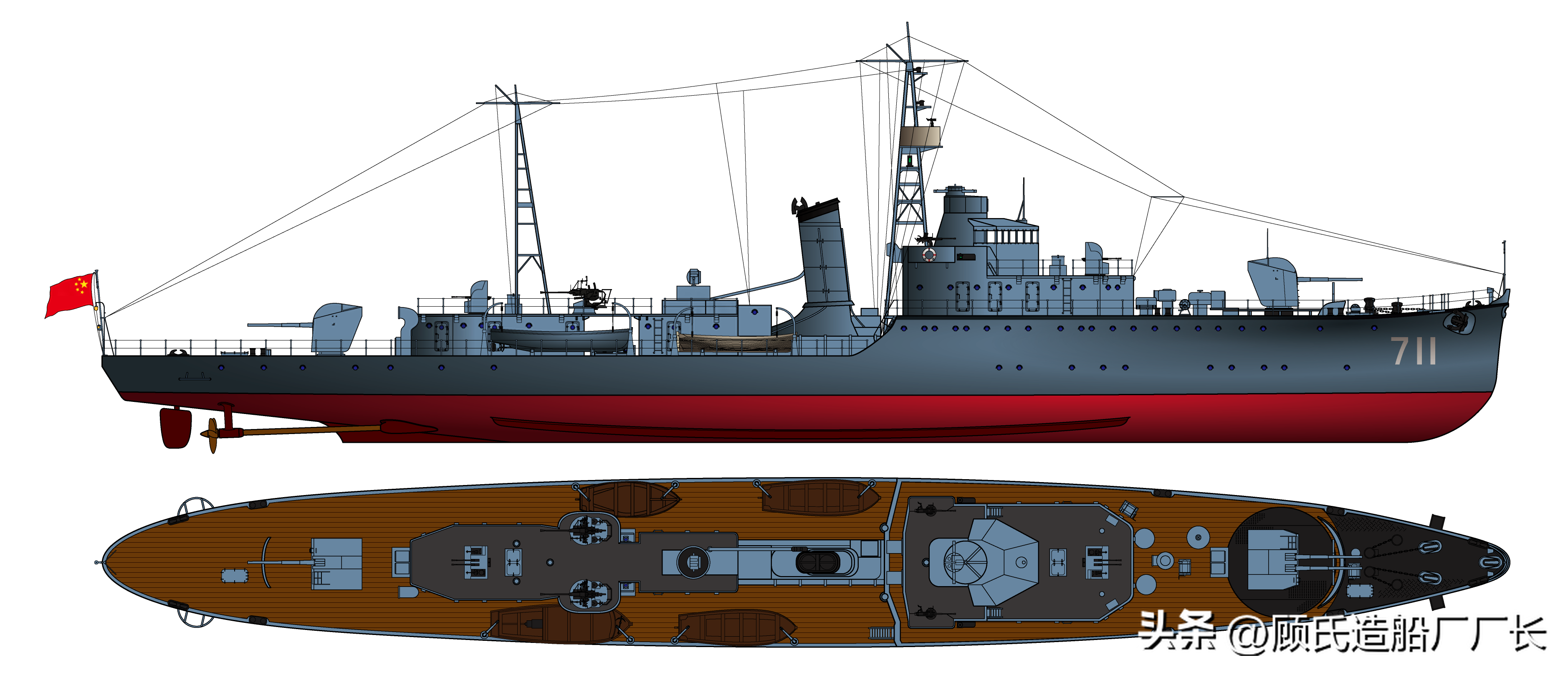 本厂长绘制的1961年时的“南昌”舰