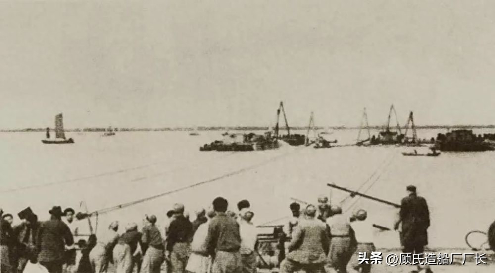 起义成功后起义官兵和解放军人员在“长治”舰桥前留影