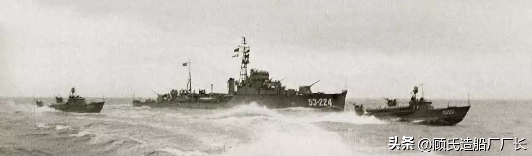 采用53-224荣誉舷号的“南昌”舰和鱼雷艇合练