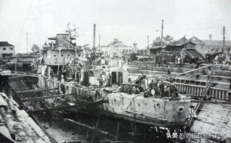 被捞起后维修中的“长治”舰
