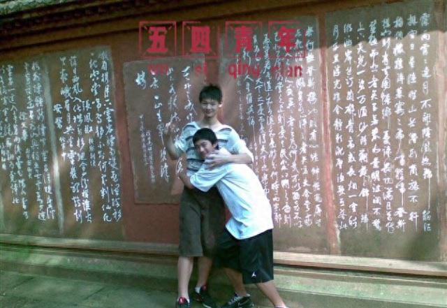 14岁的他就已经是瘦高瘦高的身材了,怀里搂着一好兄弟,发型引来了热议,当时的王哲林还是黑发,但非主流的杀马特发型掩盖不住他的时尚,有网友称“像山里的放羊娃”,但大部分人还是觉得挺帅的,即便像素一般也能看出眉宇间的清秀帅气。