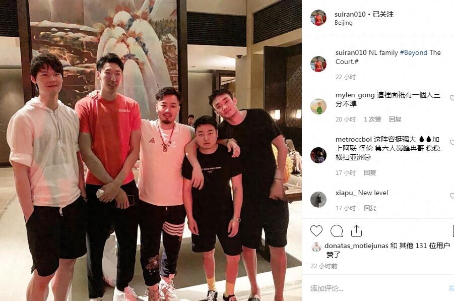 前CBA山东队球员睢冉在个人ins晒出了自己和王哲林、周琦以及丁彦雨航的合影。配文写道:NL大家庭#超越赛场#!值得一提的是,NL正是睢冉的经纪公司(NEW LEVEL)的单词缩写。同时莫泰尤纳斯还点赞了该ins。