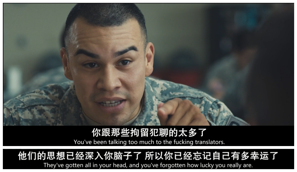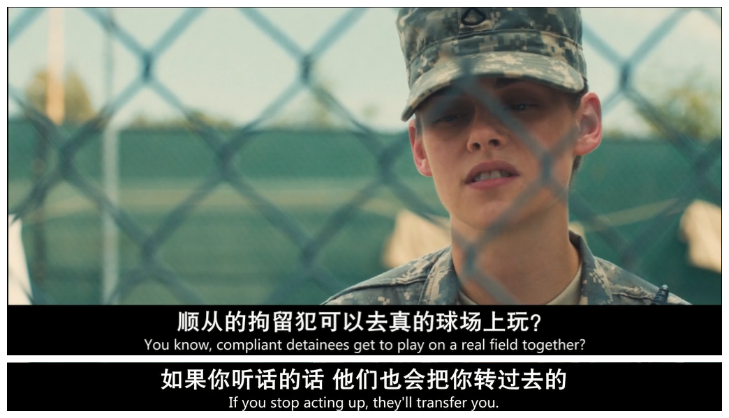 在关塔那摩,她和其他看守一样,被穆斯林仇视,执行任务时被打掉面罩,被吐口水,被泼粪便……对于一个有点洁癖的人来说,光看镜头都替她难受。