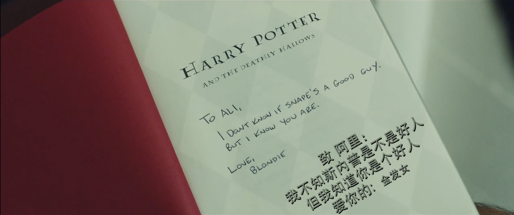 可儿离开时,帮阿里买了一本《哈利波特与死亡圣器》,并在扉页上写下“我不知道斯内普是好人还是坏人,但是我知道你是。”