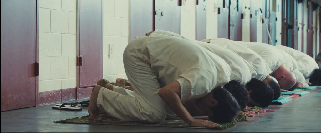 一个是平时暴躁不堪的拘留犯拿着古兰经,虔诚地跪着向真主祷告;