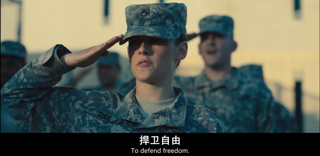 一开始我的关注点完全在穿迷彩服的小K身上,她的气质真的适合这个角色,虽然在一群人高马大的美国大兵中显得娇小,但依然英姿飒爽。