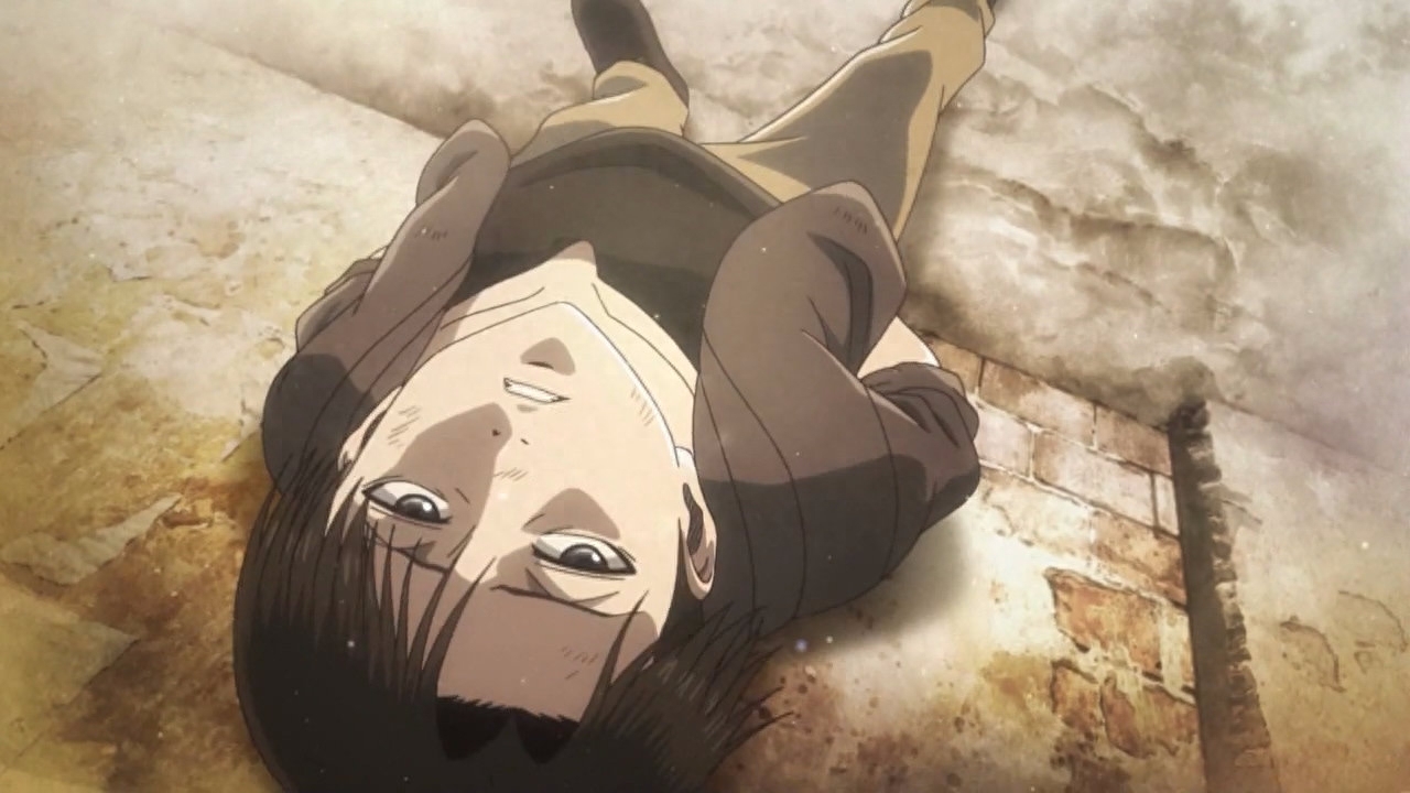 小林:这一集中,我们加入了希丝特莉亚下定决心成为女王的场景。动画台词跟原作漫画不同,是因为她跟父亲诀别后,在精神层面上有所成长。如果是一样的剧情发展,以前的成长就会变得莫名其妙了。配合动画中她的心情,为了让场景成立,于是就对台词做了调整。还有,我实在是不想省略希丝特莉亚殴打利威尔的噱头场景。可是,说「等你成为女王后,再打那家伙就行了」利布斯会长已经死掉了,所以就让三笠代替他说了出来。我想让那个场景,尽量按照原作漫画的流程来处理。