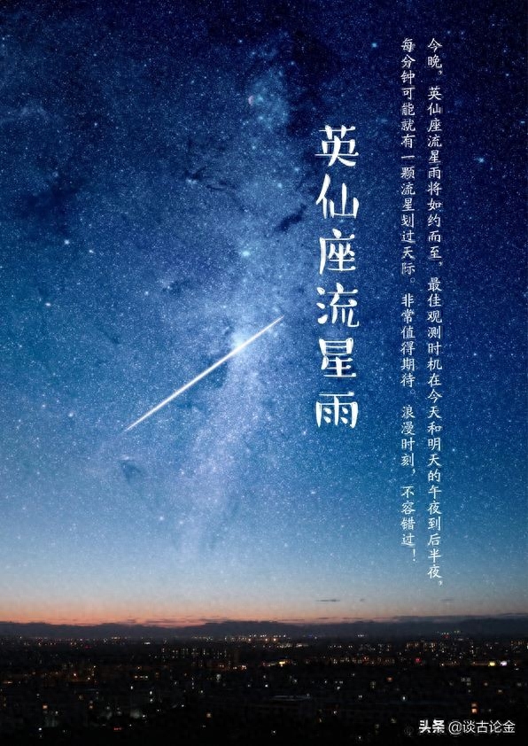 英仙座流星雨(学名Perseids)每年7月20日至8月20日前后出现,于8月13日达到高潮。