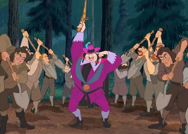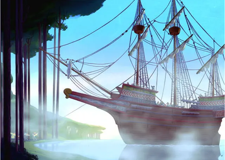 抛开对真实历史的渗透涉猎,虽然现在来看这个故事的结局美好到失真,但还是代表了一种乌托邦价值观的输出。尤其被“野蛮的”印第安人和“殖民主义侵略者”那段对峙般的配乐“对唱”给震撼到,而且有很多极具讽刺的细节,都更有预见深意。