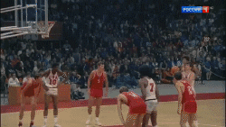 终场还剩40秒的时候,苏联还以48-49领先美国队1分,此时亚历山大-别洛夫传球失误给了美国队推反击的机会。道格-科林斯迅速反击造成犯规。