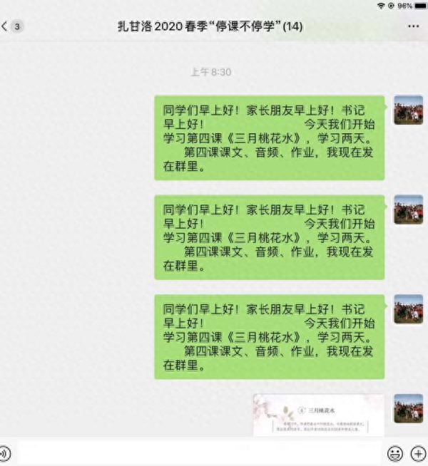 “我这还是第一次学习怎么建群,怎么通过微信把图片下载了,然后标注以后再发送。”谢彬蓉说,为了给孩子们上课,她不仅学会了建微信群,学会了编辑图片,还学会了使用各种App寻找教学资源。“我和孩子们一起学习,一起成长。”据谢彬蓉介绍,为了让孩子们听到最标准的普通话,她常常会准备两个手机,一个手机放音频,然后另外一个手机录,生成文件后,再发给孩子们。白天参加疫情防控志愿服务,晚上在家准备网上教学资料,虽然有点累,但是看到孩子们每天可以开心地学习,谢彬蓉感觉自己累有所值。