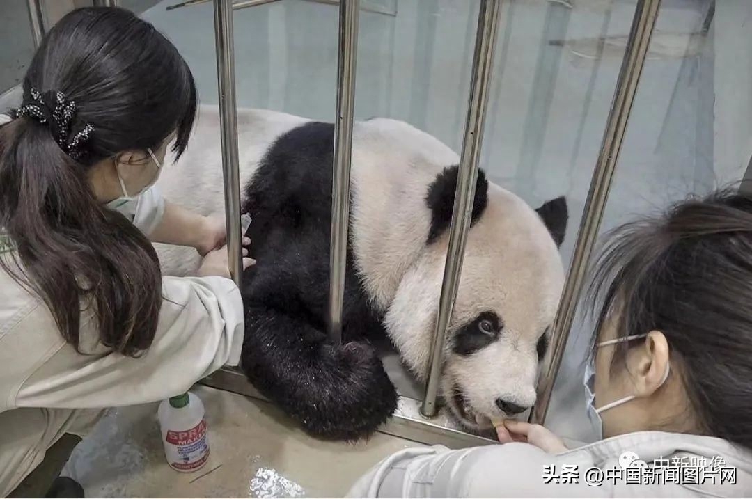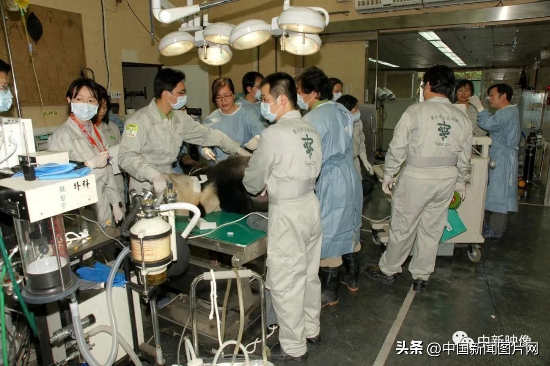 兽医为大熊猫“团团”诊治病情。(图片来源:台北市立动物园)