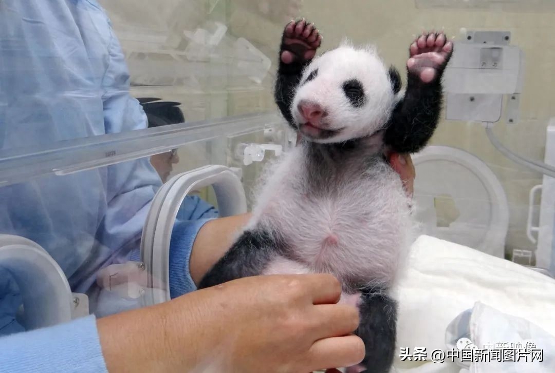 2013年7月6日,大陆赠台大熊猫“团团”“圆圆”首胎幼仔“圆仔”出生。图为8月4日“圆仔”接受保育员护理。(台北市立动物园 供图)