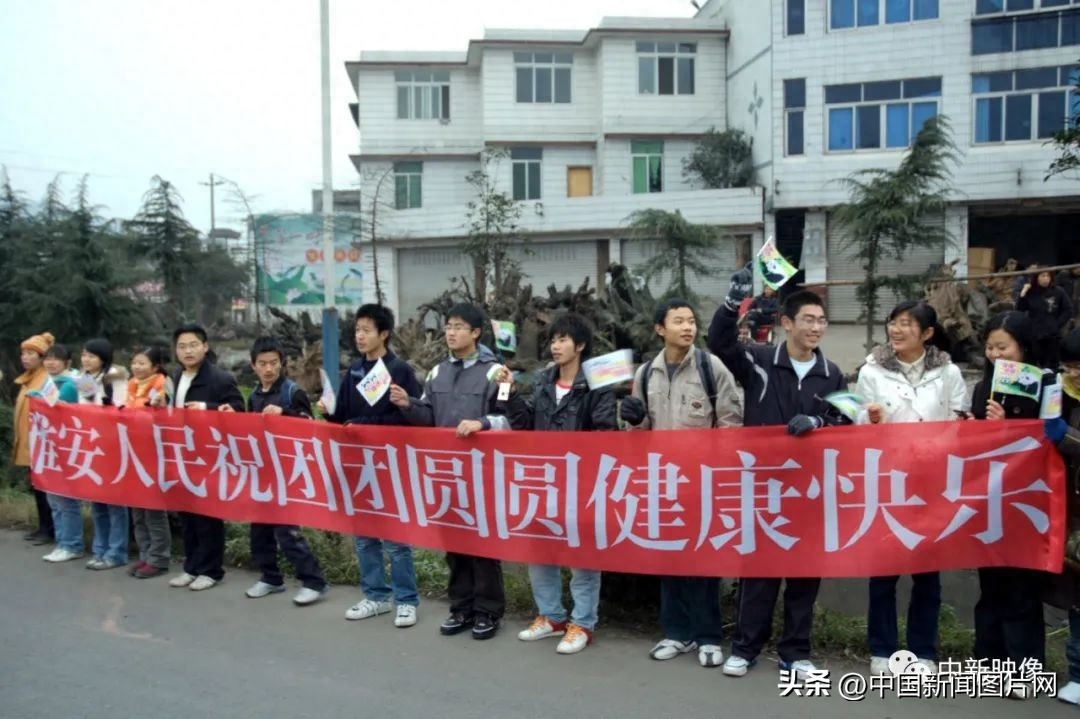 2008年12月23日,四川省雅安市市民在路边欢送大熊猫“团团”“圆圆”赴台。(张国军 摄)