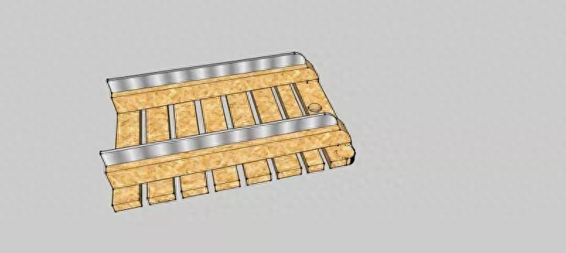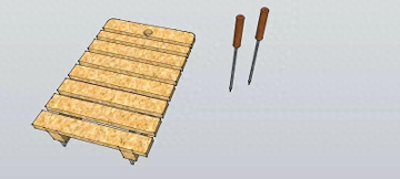 所谓的冰车,就是在两根木方做成的冰刀架上钉上木板,人坐在木板上,用冰锥开冰车。冰车的结构如下图所示。