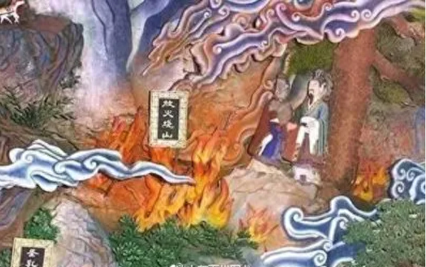 于是派了军士在山前山后周围放火,山火一旦烧了起来,火借风势,风助火势,火烈风猛,延绵数里,一直烧了三日火才息了。