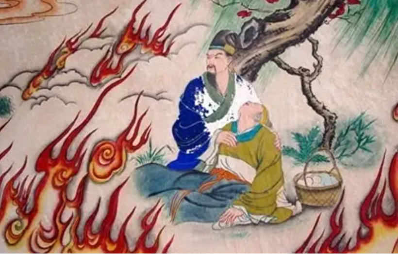 文公下令车就停在山下,就这里出发,派人去寻找。可是找了几天也没有找到。文公脸上有点生气了,对解张曰:“子推为什么会恨寡人这么厉害呢?我听闻子推十分孝顺,如果放火烧了树林,他必定会背着老母出来的。”