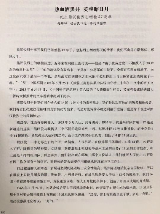 关于网传铁道兵熊汉俊烈士被活埋进桥墩牺牲的故事的辨析