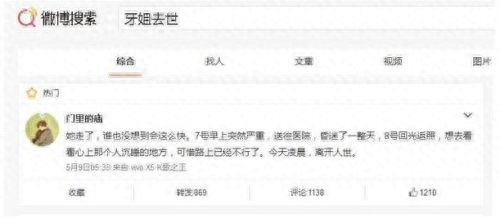 微博上突然一则热搜:“牙姐去世了”,牙姐为什么死了?牙姐曾经跟一个小男孩的爱情故事让很多人沉默动容,我们一起来了解一下吧。
